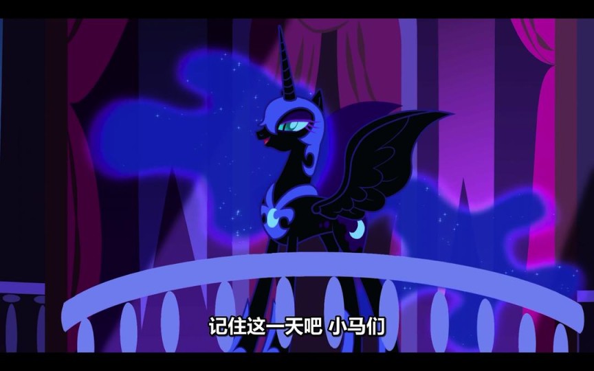 在基本人物都介绍完后,梦魇之月/Nightmare Moon如约而至。这时候的Twilight更多是惊慌、不知所措,期待她在下一集的人物转变。